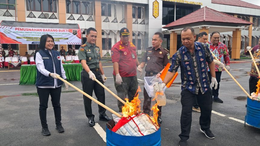 PALANGKA RAYA – Kegiatan pemusnahan barang bukti yang telah memiliki kekuatan hukum tetap (inkracht) di halaman Kantor Kejaksaan Negeri Palangka Raya, Jalan Diponegoro, Kamis (20/11/2025).