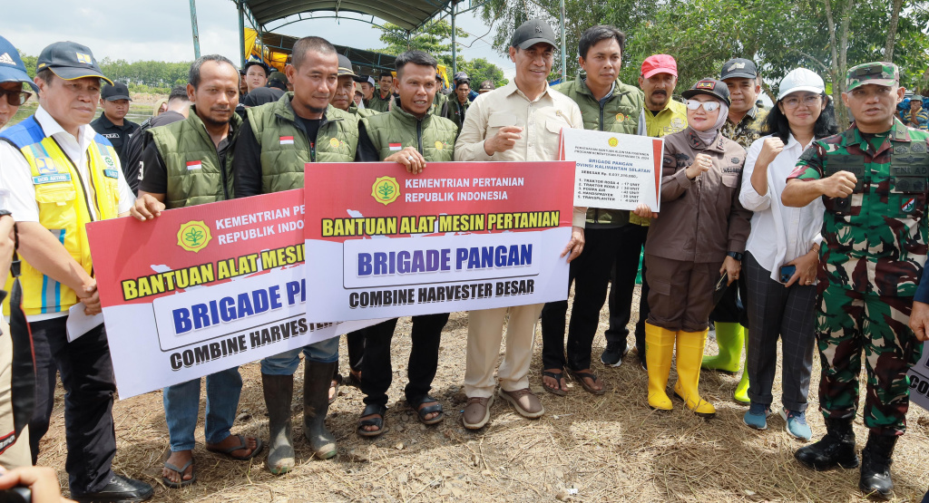 Dalam kesempatan itu, Kementerian Pertanian menyerahkan bantuan Alsintan prapanen program untuk Brigade Pangan Kalimantan Selatan diserahkan Mentan RI, Andi Amran Sulaiman, di lokasi kunjungan kerjanya berupa, traktor roda empat sebanyak 17 unit, traktor roda dua sebanyak 34 unit, pompa air sebanyak 43 unit, handsprayer sebanyak 30 unit dan transplanter sebanyak empat unit.(red/ril)