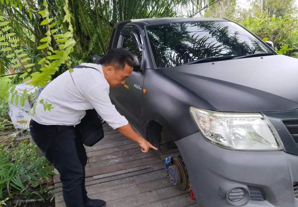 Bahkan, sebut dia, pada bangunan warna cat hijau itu beberapa papan dan balok patah dan berhamburan.