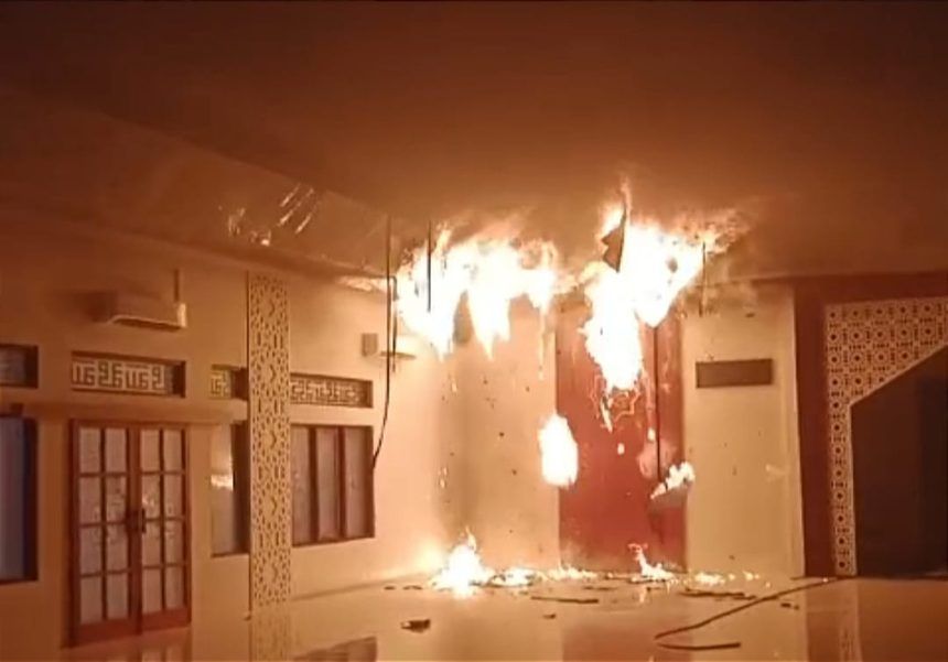 “Awalnya saya menghidupkan lampu, kemudian saya pulang sebentar. Setelah kembali saya, mendengar ada suara letupan cukup keras dari dalam masjid, lalu saya langsung mematikan saklar lampu, dan api pun muncul dari dibagian lampu di plafon sebelah kiri,” pungkasnya. Zal