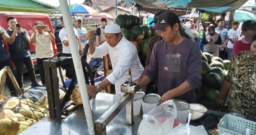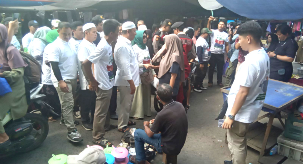 Kampanye blusukan pasangan Calon Bupati Barito Kuala (Batola) dan Calon Wakil Bupati Batola Nomor Urut 1, H Bahrul Ilmi dan Herman Susilo di Pasar Marabahan, warga kompak sampaikan ingin perubahan, Selasa (29/10/2024).