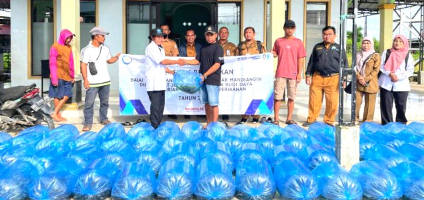 Balai Perikanan Budidaya Air Tawar (BPBAT) Mandiangin merupakan Unit Pelaksana Teknis (UPT) Kementerian Kelautan dan Perikanan bersama Dinas Ketahanan Pangan dan Perikanan Kabupaten Barito Kuala (DKPP Batola) dan Penyuluh Perikanan Kecamatan (PPK) Cerbon menyaluran bantuan benih Ikan Patin, di Desa Simpang Nungki, Kecamatan Cerbon, Selasa (30/09/2025).
