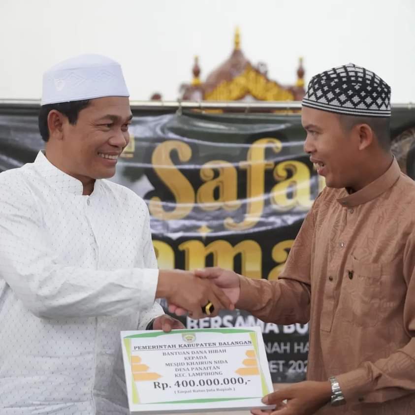 Pada kesempatan itu, Bupati Balangan, H. Abdul Hadi menyerahkan bantuan dana hibah sebesar Rp. 1.950.000.000 untuk dua tempat ibadah, di pondok pesantren, taman pendidikan Al – Qur’an dan tanah makam.