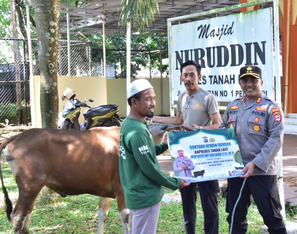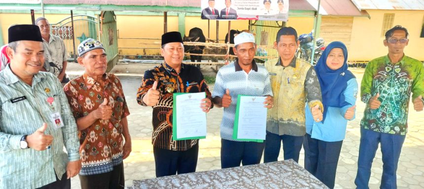 MARABAHAN,teladankalimantan.com- Bupati Barito Kuala (Batola), H Bahrul Ilmi menyerahkan bantuan sapi kurban dari Presiden Republik Indonesia (RI) kepada masyarakat Desa Tatah Mesjid, Kecamatan Alalak, di halaman Masjid Arrahmanurrahim, Kamis, (05/06/2025)