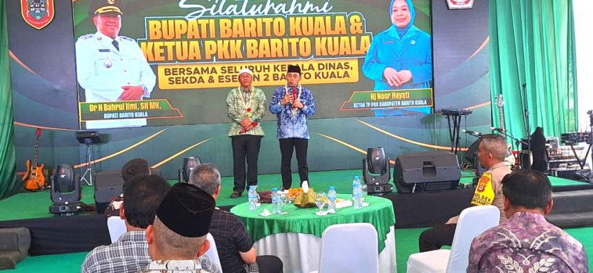 Bupati Barito Kuala (Batola) Terpilih 2024, H Bahrul Ilmi dan Ketua Tim Penggerak PKK Kabupaten Batola, Hj Noor Hayati menggelar silaturahmi dengan Sekretaris Daerah Kabupaten (Sekdakab) Batola, Kepala Satuan Kerja Perangkat Daerah (SKPD) dan pejabat Eselon Dua Lingkup Pemkab Batola, di rumah kediaman H Bahrul Ilmi di Desa Tabunganen, Minggu (02/02/2025).
