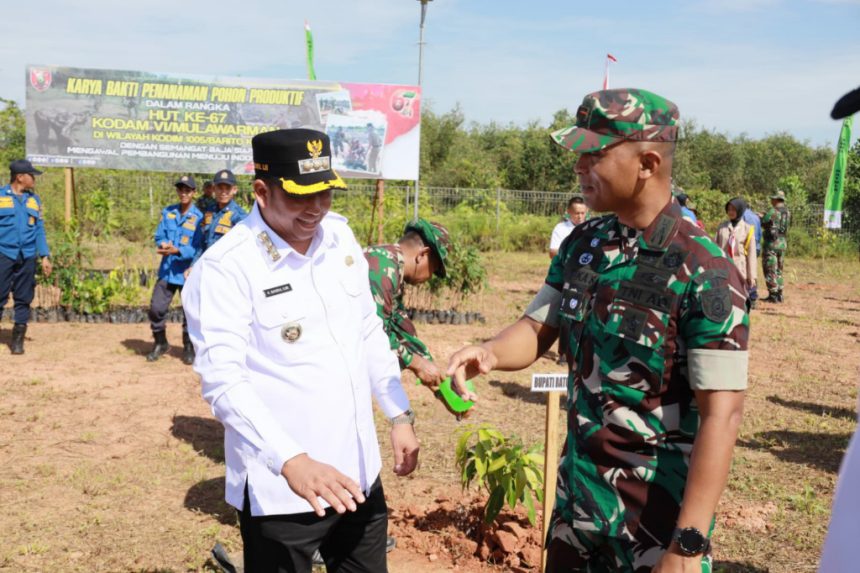“Melalui momentum ini, diharapkan sinergitas antara TNI/Polri dengan Pemkab Batola dapat terus terjaga demi terpeliharanya kondusifitas, khususnya di wilayah Batola,” ujar H Bahrul Ilmi, pada kegiatan Karya Bhakti Penanaman Pohon Serentak bersama Kepala Staf Korem 101/Antasari, di kawasan Long Storage Batola, Rabu (02/07/2025).