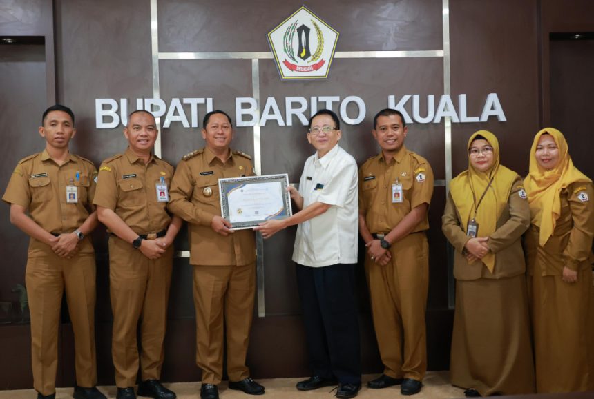 MARABAHAN,teladankalimantan.com- Bupati Barito Kuala (Batola), H Bahrul Ilmi menerima tiga penghargaan dari Kantor Pelayanan Perbendaharaan Negara (KPPN) Banjarmasin dan diserahkan langsung oleh Kepala KPPN Banjarmasin Fanny Fariyanto, di Kantor Bupati setempat, Senin, (10/03/2025).