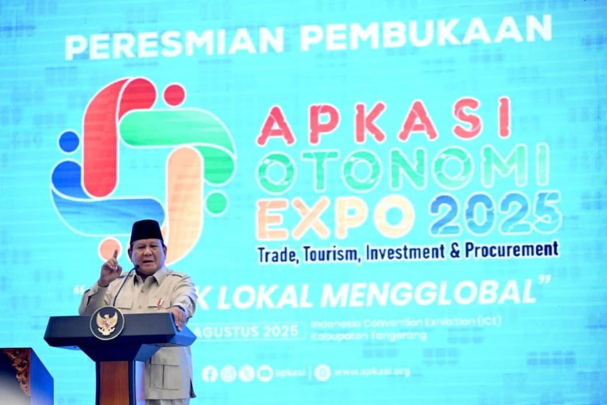APKASI Otonomi Expo 2025 dibuka secara resmi oleh Presiden RI Prabowo Subianto dengan tema “Produk Lokal Mengglobal”. Pameran yang berlangsung pada 28–30 Agustus ini diikuti ratusan kabupaten dari seluruh Indonesia, yang menampilkan produk unggulan lokal, potensi investasi, serta inovasi pembangunan daerah.