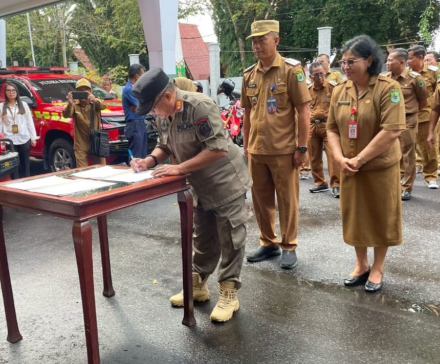 KUALA KAPUAS, teladankalimantan.com – Dengan mengambil tempat di Aula Rumah Jabatan Bupati, Pemerintah Kabupaten Kapuas melalui Dinas Sat Pol PP dan Pemadam Kebakaran menyerahkan kendaraan operasional penanganan kebakaran Hutan dan Lahan kepada 3 Kecamatan yang dinilai sebagai wilayah rawan Karhutla, Senin (21/4/2025).