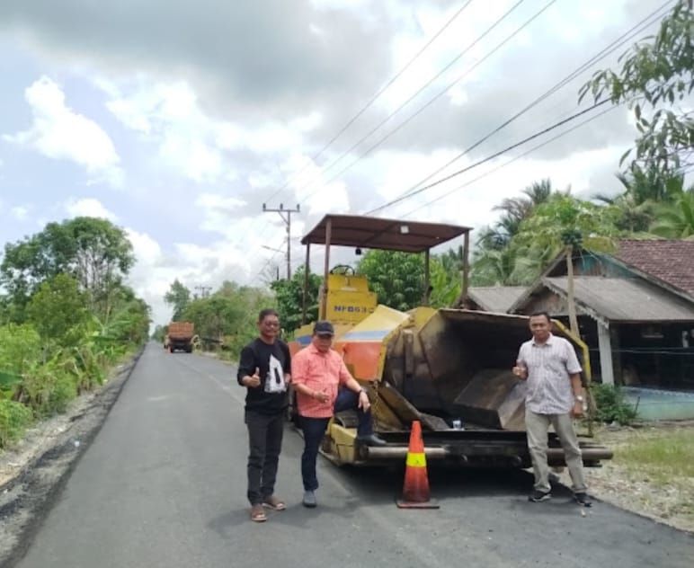 Bupati Kapuas H.M. Wiyatno didampingi Anggota DPRD Kabupaten Kapuas Thosiba Limin dan H. Fahmi turun langsung ke lokasi untuk melihat kondisi fisik jalan serta progres pengerjaan yang masih berlangsung.