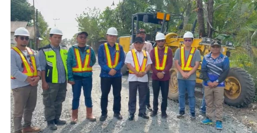 KUALA KAPUAS, teladankalimantan.com – Bupati Kapuas H. M. Wiyatno, SP bersama Sekretaris Daerah Usis I Sangkai dan Kepala Dinas Hargatin meninjau progres rekonstruksi sejumlah ruas jalan desa di Kecamatan Tamban Catur, Jumat (3/10/2025).