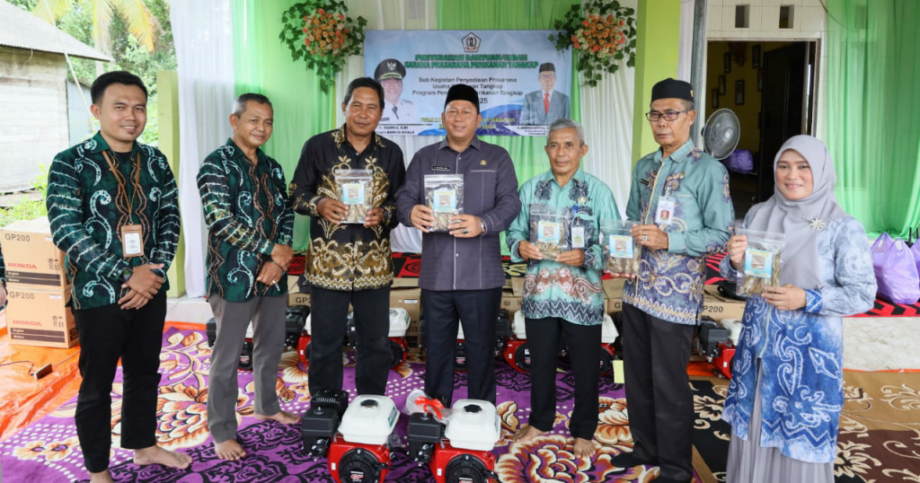 MARABAHAN,teladankalimantan.com – Bupati Barito Kuala (Batola), H Bahrul Ilmi menyerahan bantuan/hibah sarana prasarana perikanan tangkap dalam program pengelolaan perikanan tangkap Tahun 2025 berupa 12 mesin ces kepada Kelompok Perikanan Gawi Selaras, di Desa Sungai Seluang Pasar, Kecamatan Belawang, Jum’at (21/03/2025).