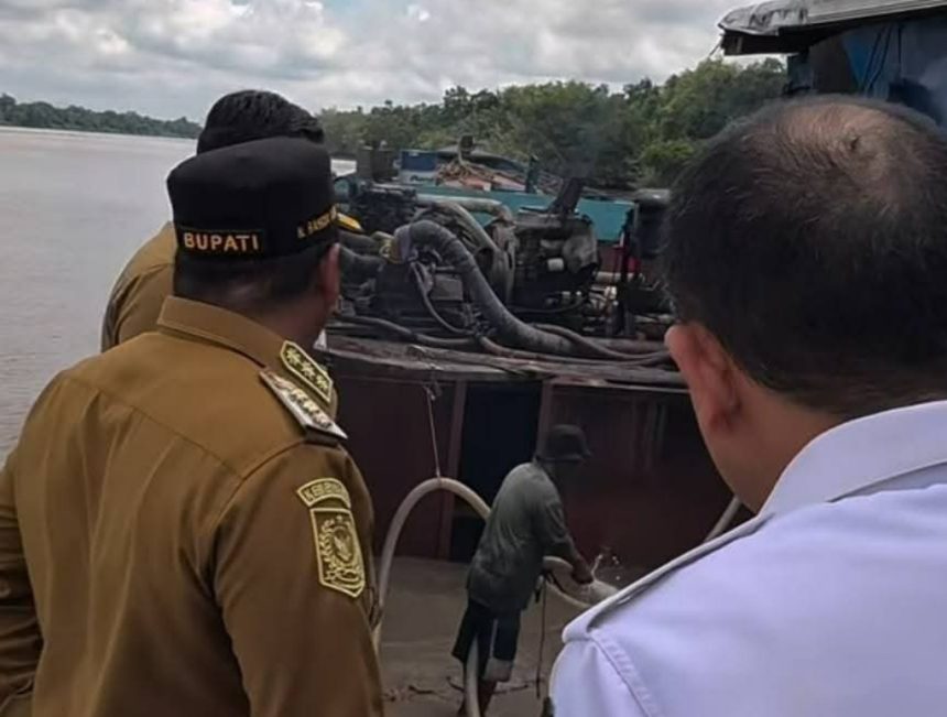 Bupati Barito Kuala (Batola) H Bahrul Ilmi melakukan survei untuk melihat potensi ekonomi di wilayah Batola, khususnya potensi pasir di sejumlah titik, Senin (13/04/2026).