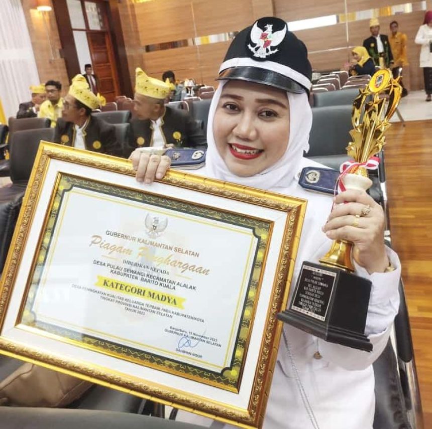 MARABAHAN, teladankalimantan.com—Desa Pulau Sewangi, Kecamatan Alalak, Kabupaten Barito Kuala, Kalimantan Selatan meraih piagam penghargaan peningkatan kualitas keluarga terbaik pada kabupaten/kota se Provinsi Kalimantan Selatan untuk tingkat madya.