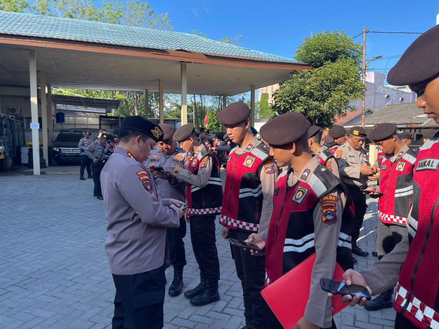 BANJARMASIN, teladankalimantan.com – Direktur Samapta Polda Kalimantan Selatan melakukan pengecekan (HP) milik para personel. Hal ini dikarenakan maraknya pemberitaan terkait oknum anggota POLRI yang terjerat kasus perjudian secara daring tersebut.