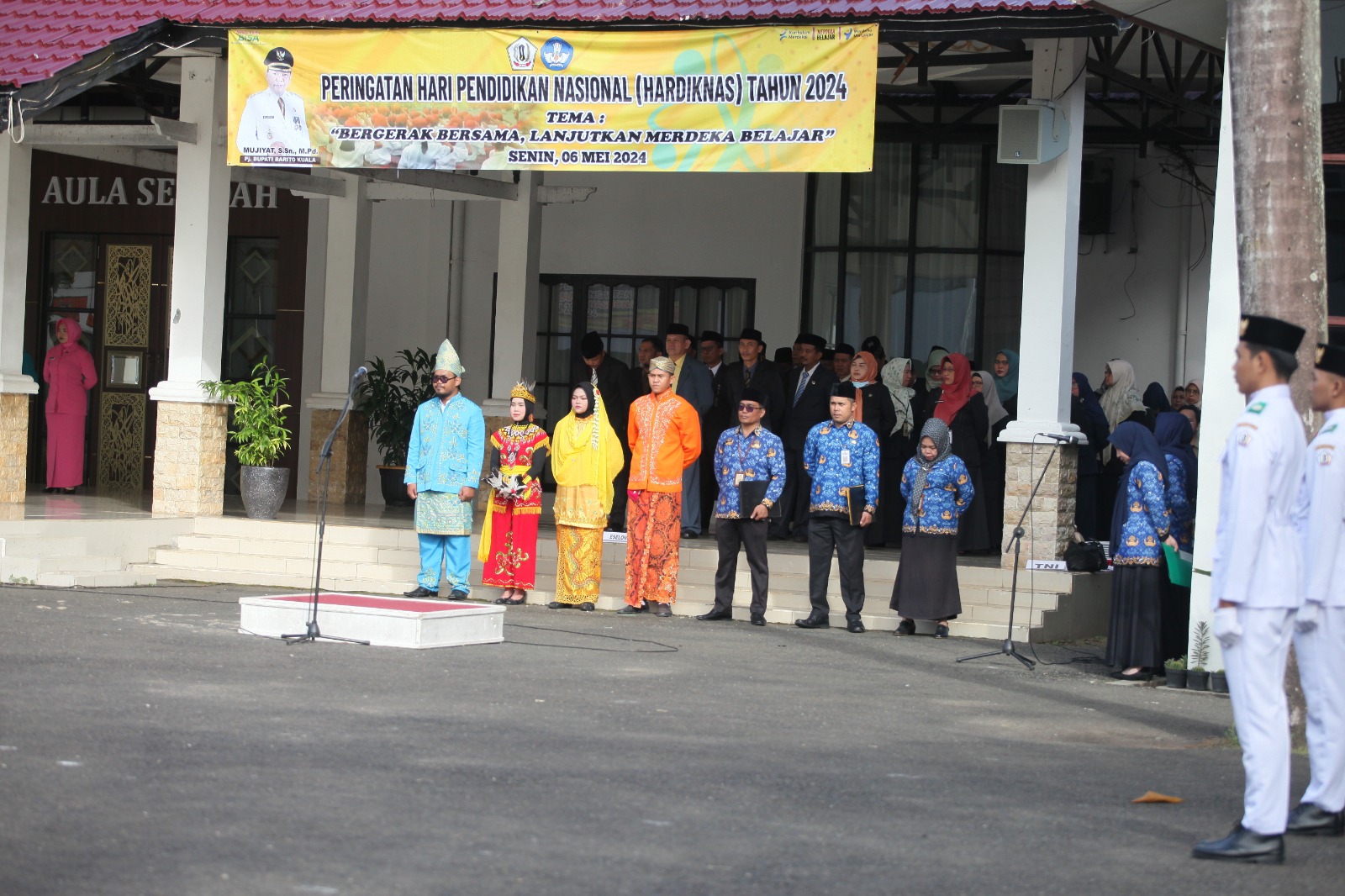MARABAHAN,teladankalimantan.com-Dinas Pendidikan Kabupaten Barito Kuala (Disdik Batola) menggelar peringatan Hari Pendidikan Nasional (Hardiknas) Tahun 2024, di halaman Kantor Bupati, Senin (06/05/2024).