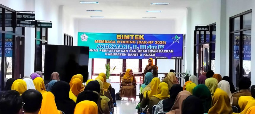 “Sebelumnya juga Kabupaten Batola dapat bantuan dari pemerintah pusat di Tahun 2021 mengusulkan dan Tahun 2022 realisasi pembangunan gedung. Di Kalsel hanya ada empat kabupaten mendapatkan,” ujar Hj Siti Aminah, saat membukan Bimtek Membaca Nyaring, di Gedung Disperpusip Batola, Senin (14/04/2025).