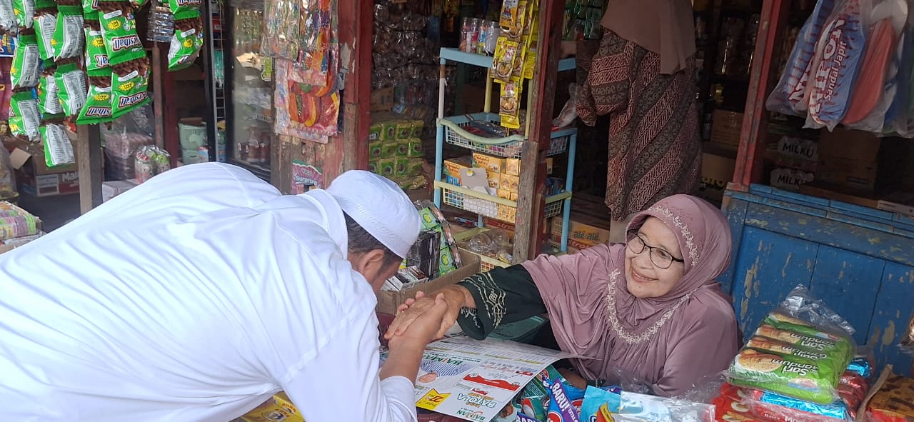 Setiap kali bertemu dengan pengunjung maupun pedagang pasar, sosok yang dikenal sebagai pengusaha sukses ini merangkul dan mencium tangan orang-orang tua.