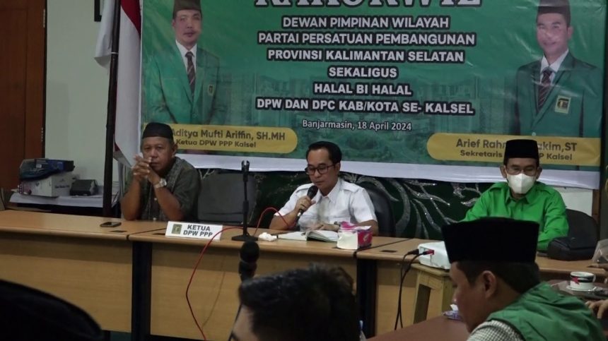 BANJARMASIN, teladankalimantan.com—Dewan Pimpinan Wilayah Partai Persatuan Pembangunan (PPP) Provinsi Kalimantan Selatan menggelar Rapat Kordinasi Wilayah (Rakorwil) sekaligus Halal Bi Halal yang berlangsung Kantor Sekretariat DPW PPP, Jalan Ahmad Yani, Komplek Perwira, Banjarmasin pada Kamis (18/4).