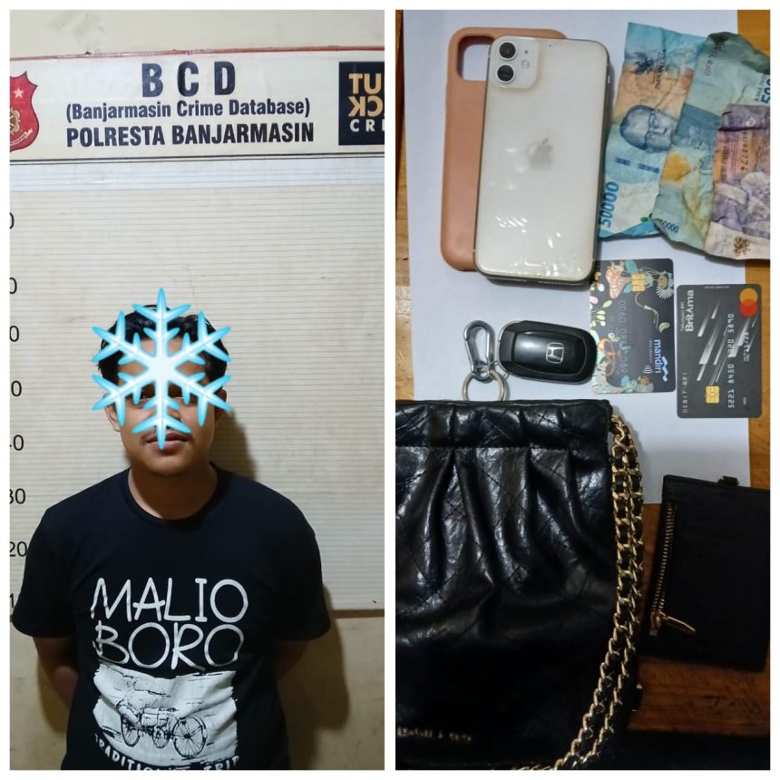 Lalu terjadilah cekcok antara korban dan pelaku hingga menarik paksa, bahkan merampas tas milik korban berisi tiga kartu ATM, kunci mobil, uang tunai Rp 850.000 termasuk satu iPhone 11 wama White, milik saksi dititipkan di dalam tas korban.