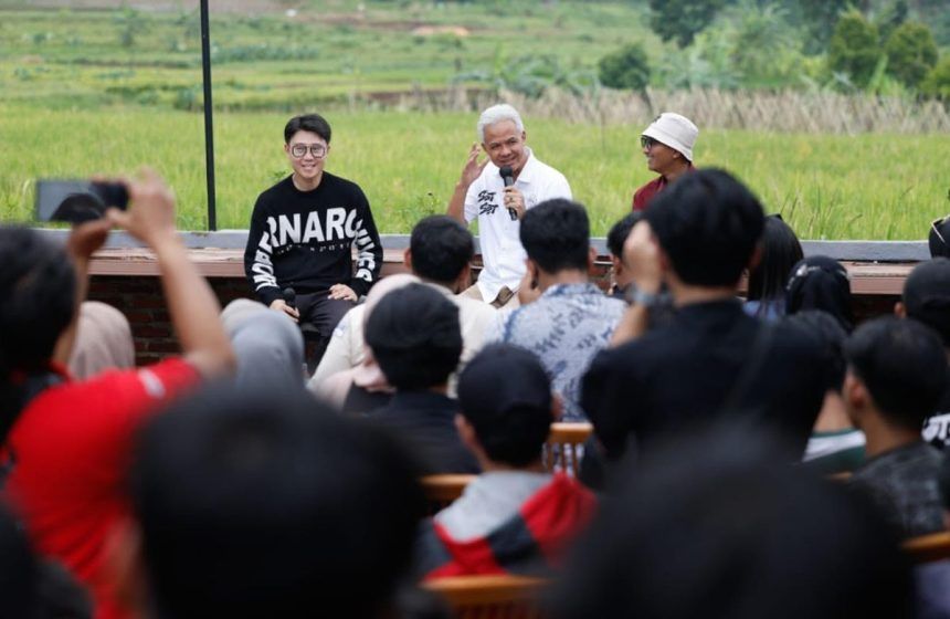 Eks Gubernur Jawa Tengah dua periode itu disambut dengan semangat oleh anak-anak muda. Di sana, Ganjar melakukan dialog bersama anak-anak muda dan Gen Z dari Jabar.