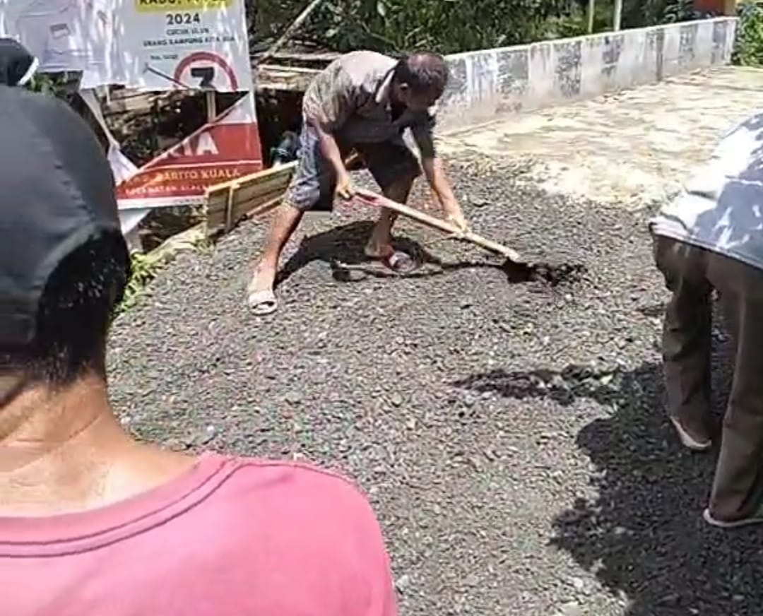 Aliansyah, warga setempat mengatakan, bantuan yang diberikan oleh H Bahrul Ilmi berupa batu LPA yang memiliki kisaran ukuran sekitar 1 hingga 50mm, yang menyatu dengan kondisi lubang di ruas jalan yang rusak.