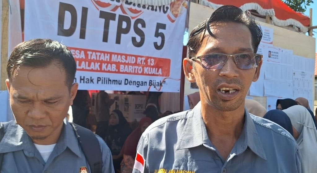 Kepala Desa Tatah Masjid, H Mery Apriansyah mengucapkan rasa syukur atas terselenggaranya pemilu 2024 tersebut
