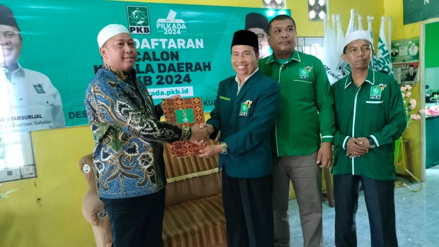 MARABAHAN,teladankalimantan.com- CEO PT Teladan Makmur Jaya (TMJ), H Bahrul Ilmi mendaftarkan diri sebagai Bakal Calon Bupati Barito Kuala (Bacabup Batola) masa bakti 2024-2029 ke Dewan Pimpinan Cabang Partai Kebangkitan Bangsa (DPC PKB) Batola, Sabtu (11/05/2024).