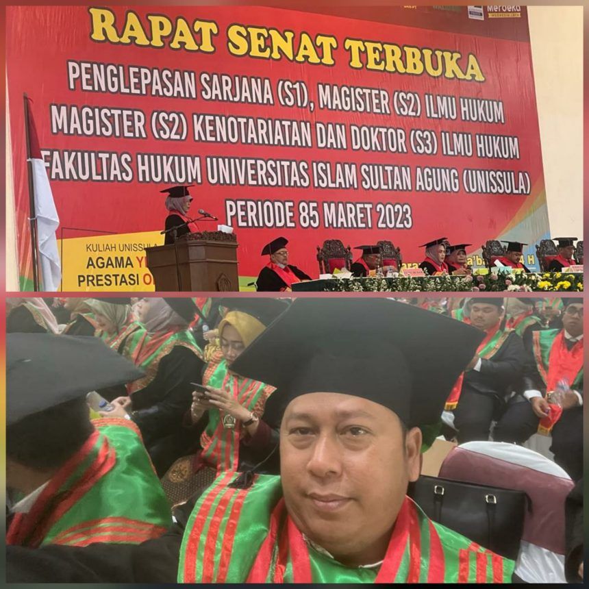 SEMARANG, teladankalimantan.com-H Bahrul Ilmi SH MH yang juga ketua DPC PPP Barito Kuala berhasil meraih gelar Doktor S3 setelah menyelesaikan studi di Universitas Islam Sultan Agung (Unissula), Semarang, Jawa Tengah.