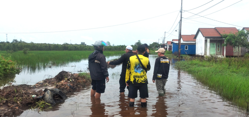 Bupati Barito Kuala (Batola) Terpilih Tahun 2024, H Bahrul Ilmi bersama perwakilan warga perumahan Batola Residence, Kecamatan Alalak, Kabupaten Batola meninjau dan memantau langsung lingkungan warga terendam banjir.