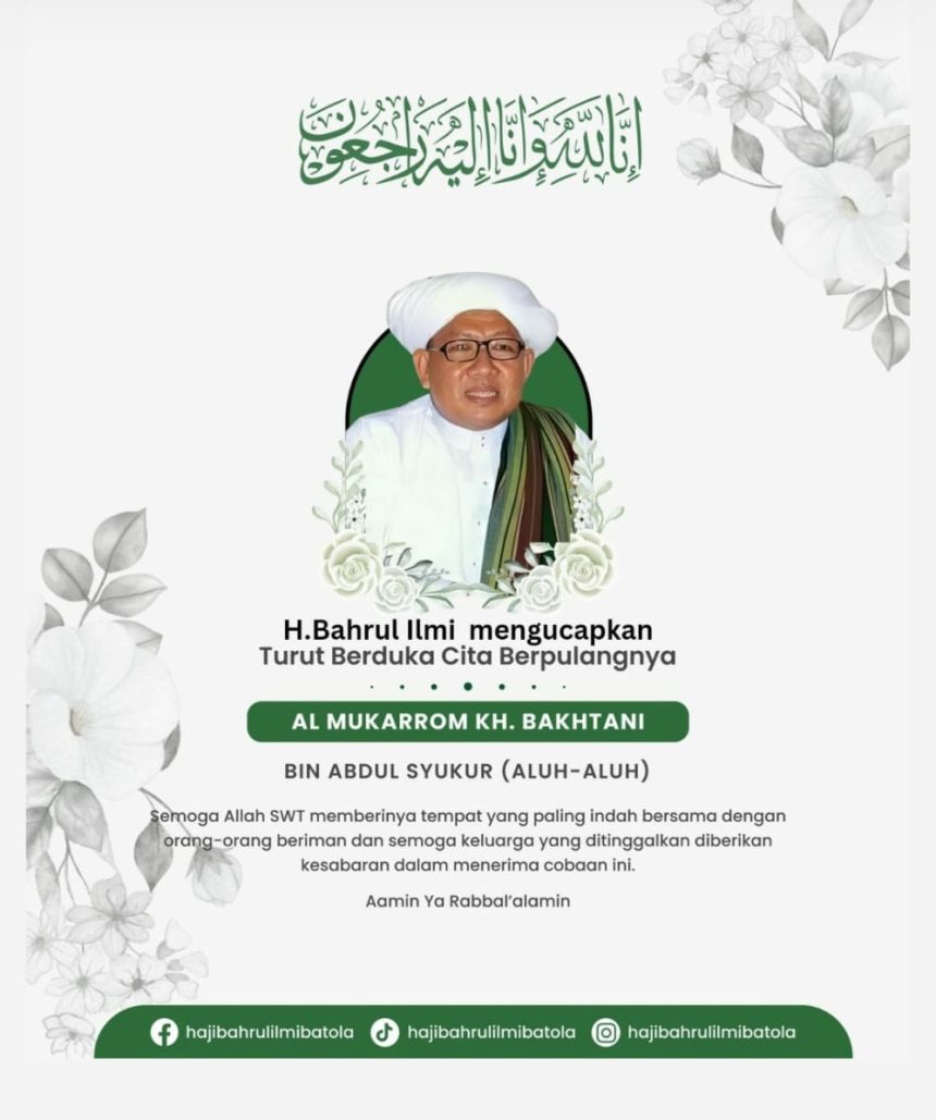 “Innalilahi Wa Innailaihi Raziun Tuan Guru KH Bakhtani. Pian (beliau) permata di Kalsel, ulun (saya) beruntung sempat belajar dengan pian (beliau) lagi anum (muda) di Aluh-Aluh,” ungkap Dr H Bahrul Ilmi SH MH.
