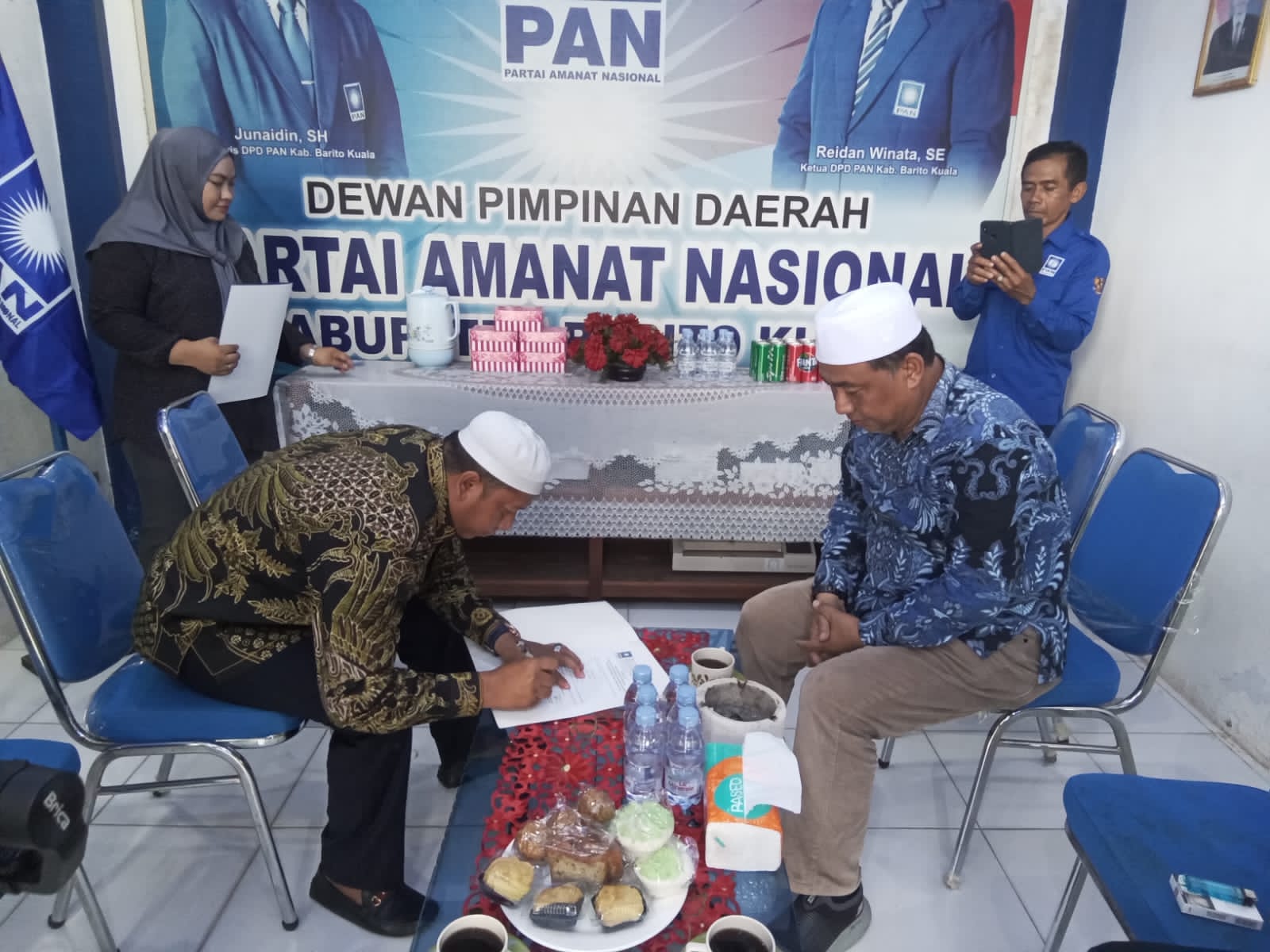 MARABAHAN,teladankalimantan.com- Ketua Dewan Pimpinan Daerah Partai Amanat Nasional Kabupaten Barito Kuala (DPD PAN Batola), H Reidan Winata mengatakan, sebagai Ketua DPD PAN Batola menyambut baik kehadiran Ketua DPC PPP Batola, H Bahrul Ilmi di sekretariat mereka untuk mendaftarkan diri sebagai Bakal Calon Bupati Batola masa bakti 2024-2029 ke DPD PAN Batola.