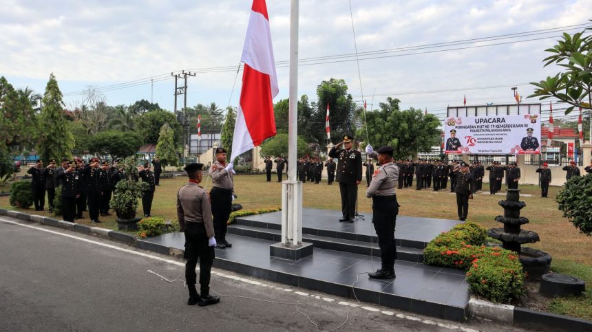 Kepolisian Resor Kota Palangka Raya, Polda Kalteng menggelar upacara bendera dalam rangka memperingati Hari Kemerdekaan Republik Indonesia ke-79 Tahun 2024, Sabtu (17/8/2024) pagi.