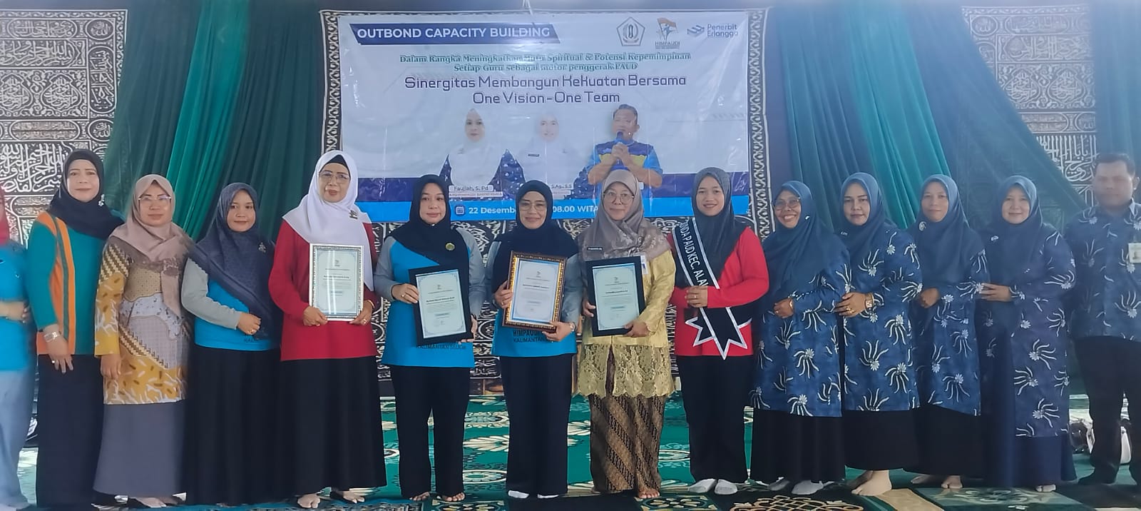 Pada kesempatan itu, Ketua HIMPAUDI Batola Fauziah memberikan piagam penghargaan kepada Ketua TP-PKK Batola Hj Noor Hayati Bahrul Ilmi, Ketua PW Kalsel, Kasi PAUD Batola, Penilik/Koordinator Kecamatan Marabahan atas terselenggaranya kegiatan tersebut.(red)