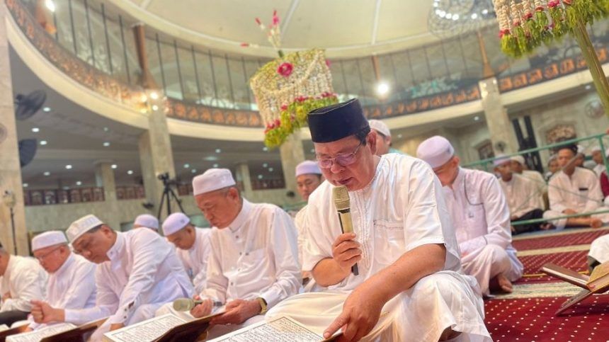 “Setiap kegiatan batamat Al-Quran Bapak Gubernur selalu bersama kita. Alhamdulillah juga pada malam hari ini, kita doakan mudah-mudahan beliau dalam keadaan sehat walafiat, panjang umur, melaksanakan tugas sebaik-baiknya,” katanya.