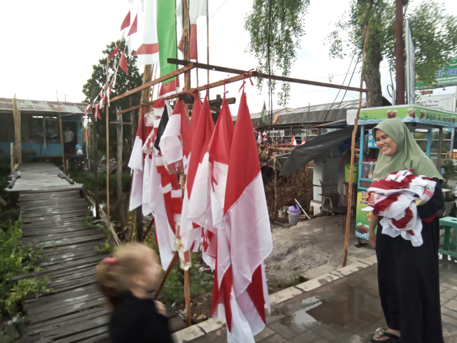 Diutarakannya, jika dibandingkan saat ini dengan tahun lalu, berjualan bendera, umbul-umbul dan pernik-pernik di Handil Bakti, lebih ramai tahun lalu pembelinya.