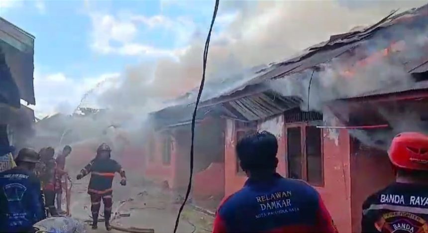 Kebakaran disiang bolong menghanguskan barak 7 pintu, berlokasi di Jalan G.Obos Induk tepatnya di Depan Asrama Haji, Jumat (9/8/2024) sekitar pukul 11.15 WIB.