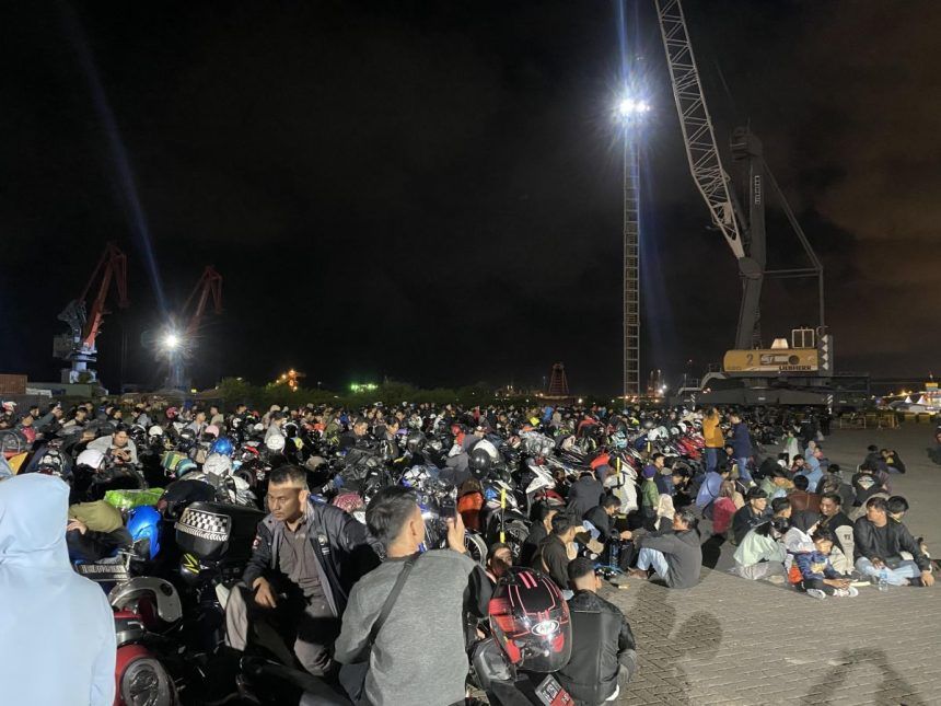 BANTEN, teladankalimantan.com- Antrean arus mudik yang menggunakan kendaraan roda dua di Pelabuhan Ciwandan, Cilegon, Banten, Sabtu (6/4/2024) dini hari mengular membuat warga harus antre hingga 3 jam.
