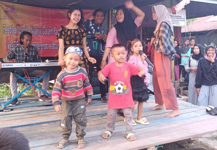 Kegiatan tersebut tampak begitu meriah, terutama anak-anak kecil yang sangat antusias mendendangkan lagu dangdut dengan kategori bebas.