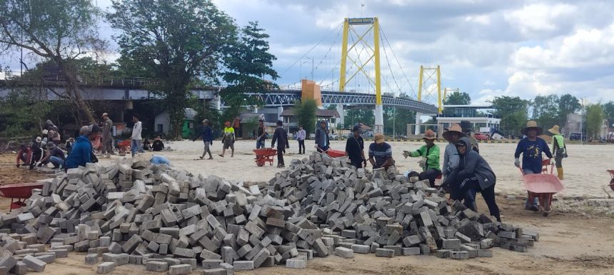 “Untuk saat ini pemasangan paving block di areal wisata Jembatan Barito sudah mencapai 70 persen,” ujar Koordinator Lapangan Irwan, Kamis (11/12/2025).