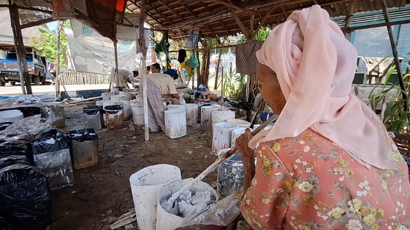 Haji Kadir, pemilik usaha pembuatan kapur kulit kerang mengakui, rata-rata pekerja yang membuat kapur kulit kerang usianya tak lagi muda, dan kebanyakan janda yang ditinggal mati suaminya.