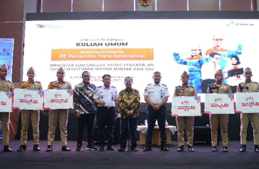 BANJARMASIN, teladankalimantan.com– Komisaris Utama PT Pertamina Trans Kontinental (PTK), Amir Hamzah melalui program Corporate Social Responsibility (CSR) Pertamina Transko Care Education PTK Goes To Campus di Politeknik Ilmu Pelayaran (PIP) Makassar memberikan materi kuliah bertajuk “Mencetak SDM Unggul Bisnis Perkapalan dan Kemaritiman Sektor Minyak & Gas”, Senin (29/1/ 2024).