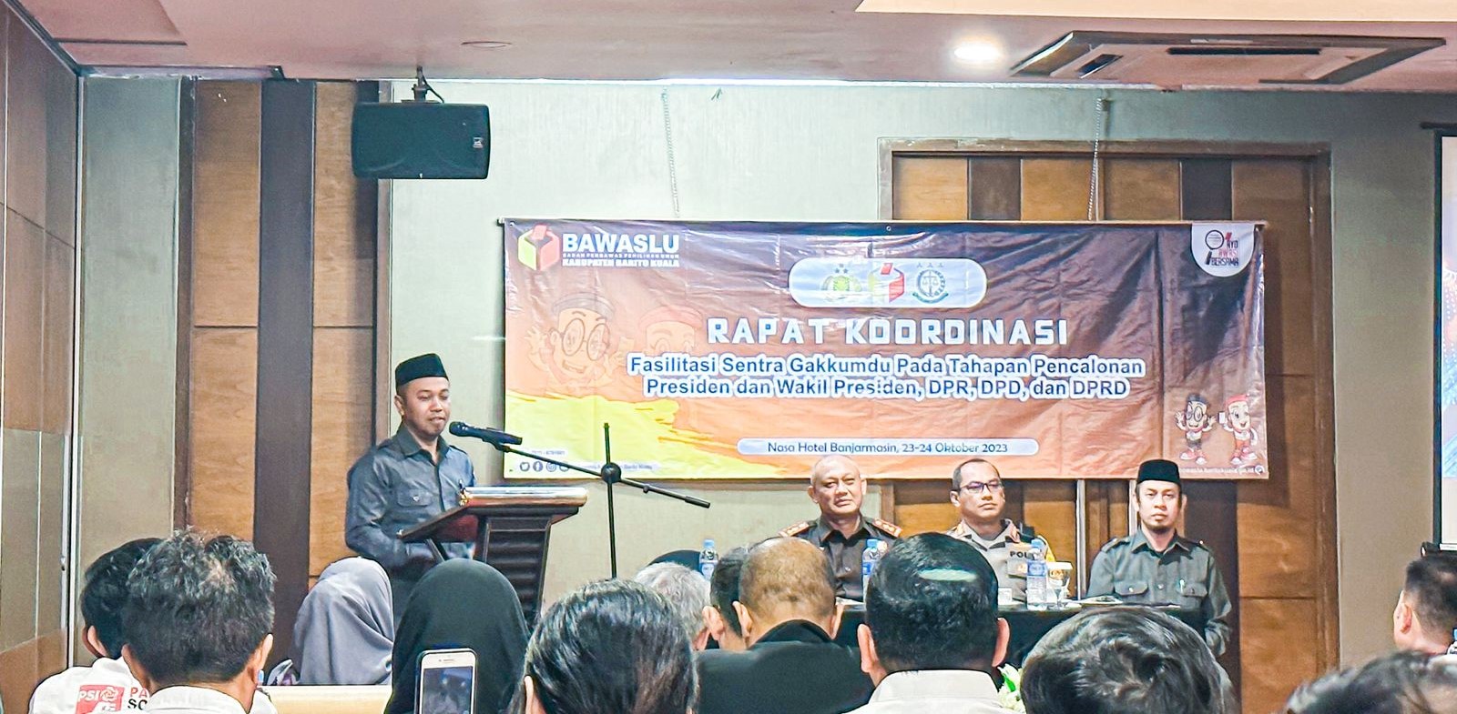MARABAHAN, teladankalimantan.com—Ketua DPC PPP Batola DR H Bahrul Ilmi SH MH menghadiri langsung kegiatan rapat koordinasi Fasilitasi Sentra Penegakan Hukum Terpadu (Gakkumdu) pada Tahapan Pencalonan Presiden dan Wakil Presiden serta Anggota DPR, DPD, DPRD Provinsi, dan DPRD Kab/Kota yang diselenggarakan oleh Badan Pengawas Pemilu (Bawaslu) Kabupaten Batola di Hotel Nasa, Banjarmasin, Senin, (23/10).