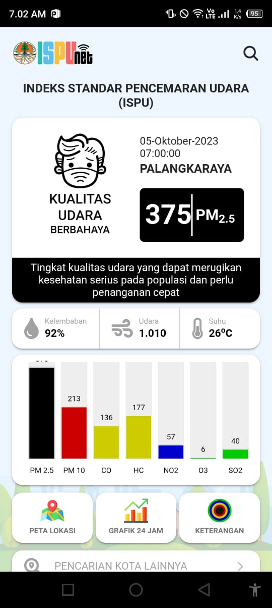 Dalam Surat Edaran disebutkan berdasarkan Data Indeks Standar Pencemaran Udara (ISPU) hasil rilis Kementerian Lingkungan Hidup, status kualitas udara Kota Palangka Raya dalam level berbahaya yang menginstruksikan kepada seluruh satuan PAUD, SD, SMP dan pendidikan kesetaraan untuk mengambil langkah PJJ atau belajar dari rumah mulai 5 hingga 7 Oktober 2023.