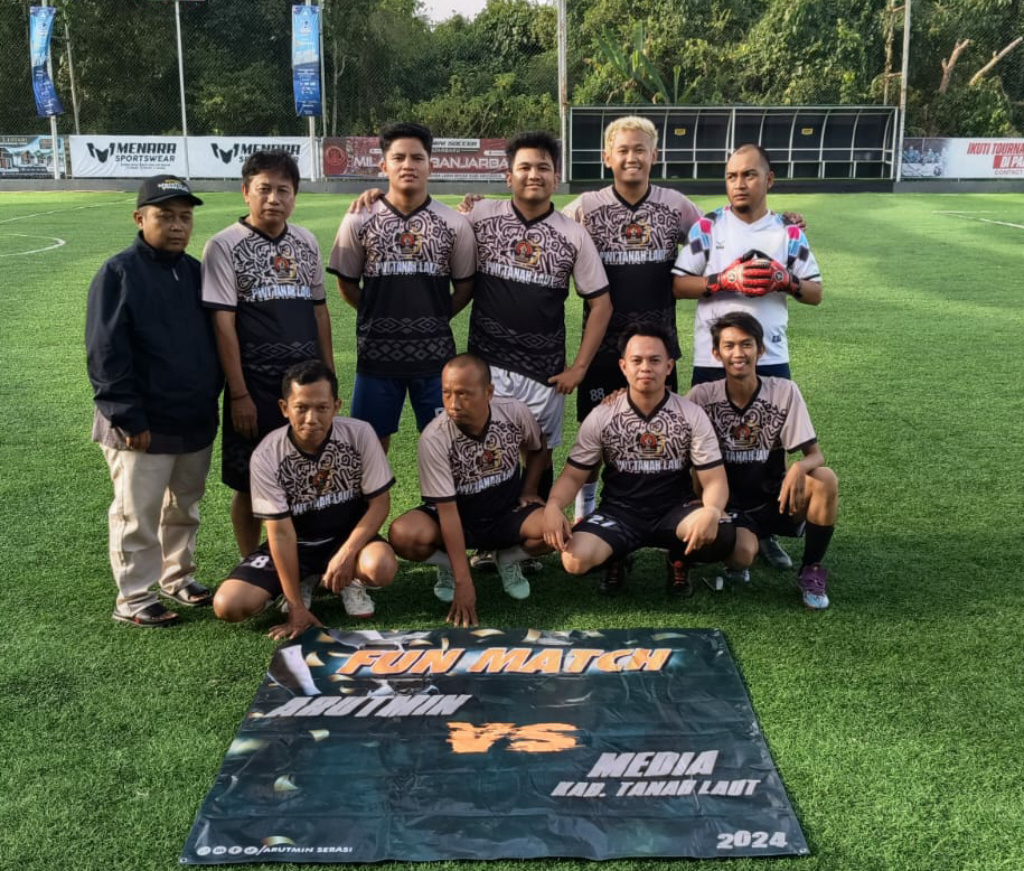 Laga persahabatan antara Tim Arutmin FC melawan PWI Tanah Laut berakhir imbang 6-6, di Lapangan Palm Mini Soccer di Banjarbaru, Minggu (15/09/2024).