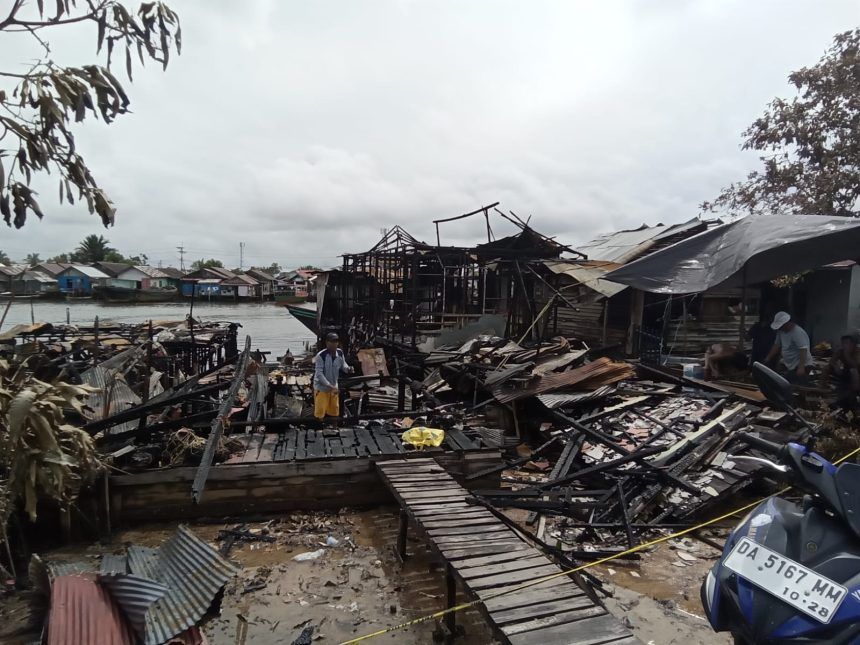 Lima rumah milik warga di RT 03 Desa Berangas Timur, Kecamatan Alalak, Kabupaten Barito Kuala (Batola) lulu lantak dilalap api, Kamis (29/02/2024) sekitar pukul 10:00 Wita.