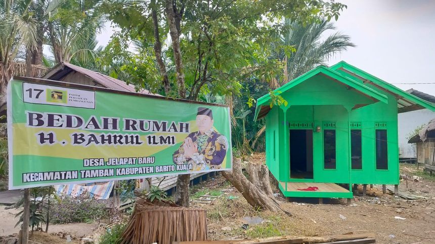 MARABAHAN, teladankalimantan.com—Program bedah rumah yang diselenggarakan oleh pengusaha ternama DR H Bahrul Ilmi SH MH yang juga ketua DPC PPP Barito Kuala dengan tujuan untuk membantu warga agar mendapatkan tempat tinggal layak selesai dilaksanakan. Peresmian bedah rumah tersebut dilakukan langsung oleh Bapak DR H Bahrul Ilmi didampingi oleh Habib Ali Bin Abdulla Bal Fakih dari Sungai Basar, Karang Intan, Martapura pada Sabtu (14/10/2023)