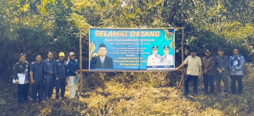 KASONGAN, teladankalimantan.com – Wakil Kepala Staf Kepresidenan (KSP) M Qadari bersama rombongan melakukan kunjungan kerja ke Kabupaten Katingan, Kamis (31/7/2025), guna meninjau sejumlah lahan calon lokasi pembangunan Sekolah Unggulan Garuda (SUG) di wilayah Kasongan, Kecamatan Katingan Hilir.