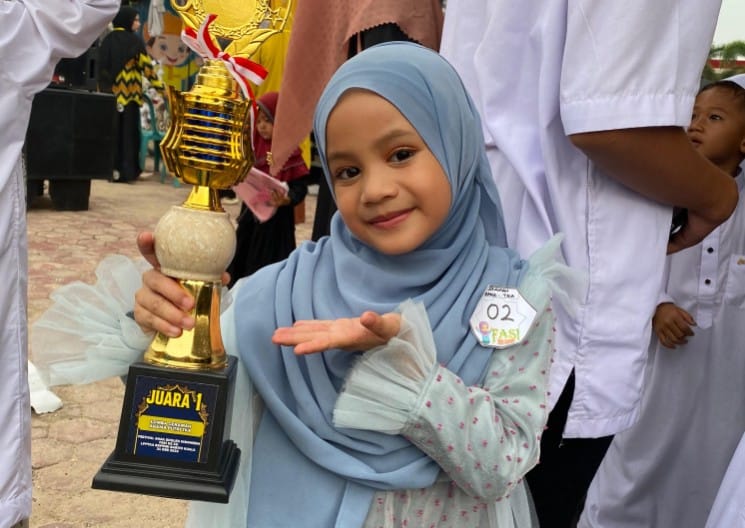 MARABAHAN, teladankalimantan.com–Prestasi yang membanggakan ditoreh oleh Nayshila Agisna, murid TK asal Desa Mekar Sari, Kecamatan Mekar Sari, Kabupaten Barito Kuala, Kalimantan Selatan ini berhasil lolos seleksi untuk mengikuti lomba tauziah dan Da’i cilik mewakili Provinsi Kalimantan Selatan di tingkat nasional.