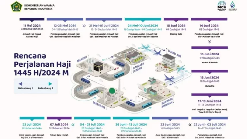 Rencana Perjalanan Haji 1445 H/2024 M (Infografis: Humas Kemenag/Rizki)